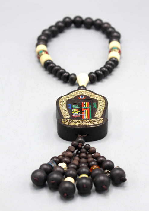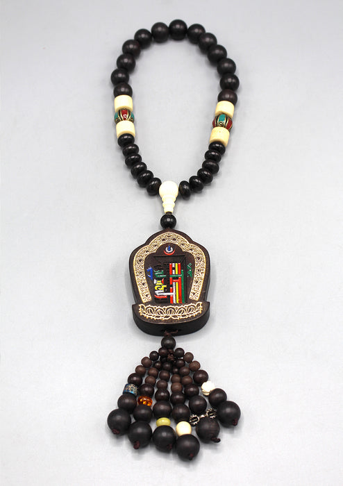 Tibetan Kalachakra Carved Wooden Car Hanging Amulet