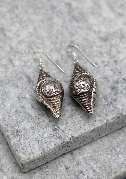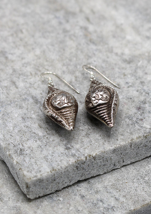 Tibetan Lucky Symbol Conch Shaped Sterling Silver Earrings