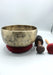 This is a Tibetan Old Healing Sound Singing Bowl with Maroon Ring Cushions, Felt Drum stick and a Mallet.