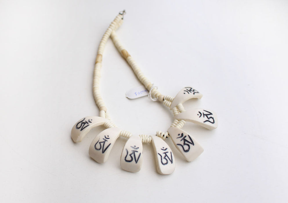 Tibetan Om Carved White Bone Necklace