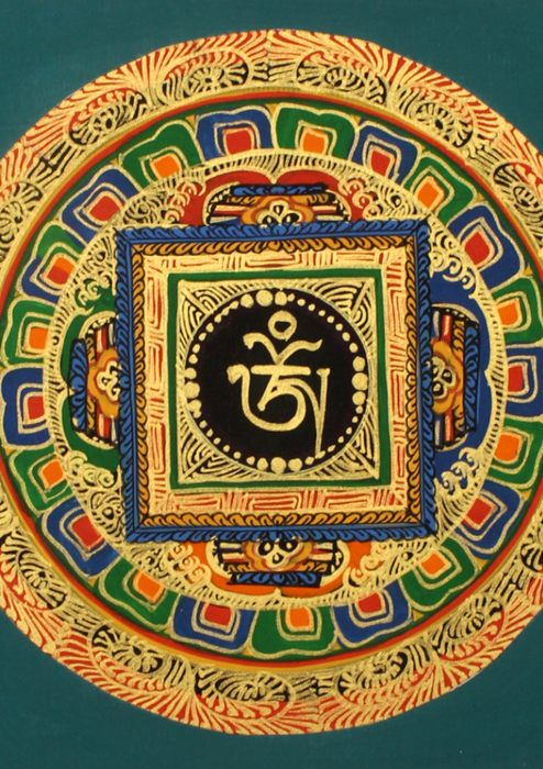 Tibetan Om Mandala Hand Painted Mini Thangka (E)