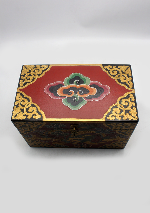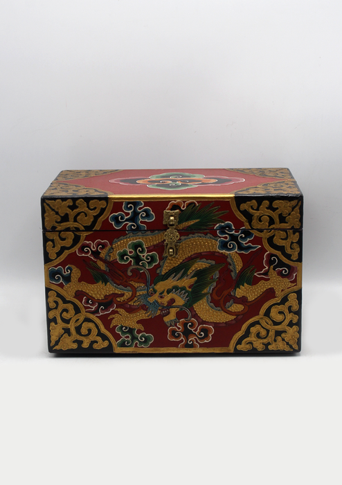 Tibetan Royal Handpainted Dragon Wooden Box - 12"