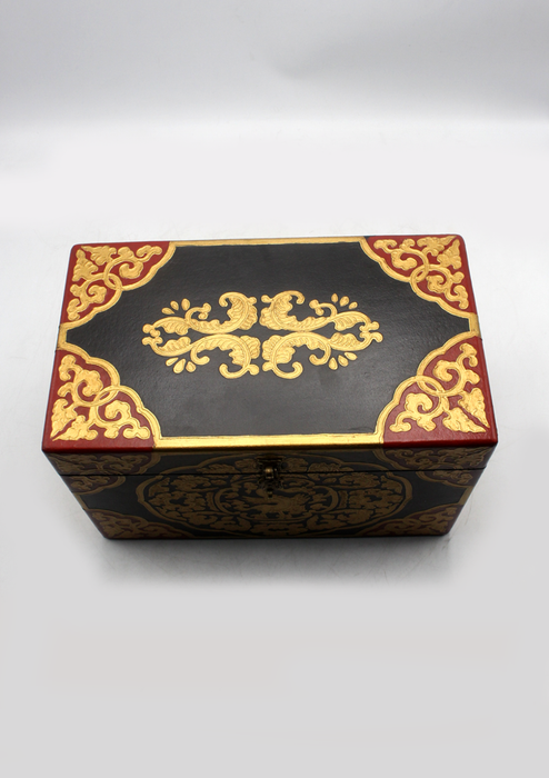 These beautiful Tibetan boxes are hand crafted by one of the Newari Communities of Bhaktapur Nepal, The Prajapatis. After the wooden box is complete, it is then hand painted by the Buddhist community of Tamangs in Kathmandu Valley. It takes upto 2 days to complete one box.