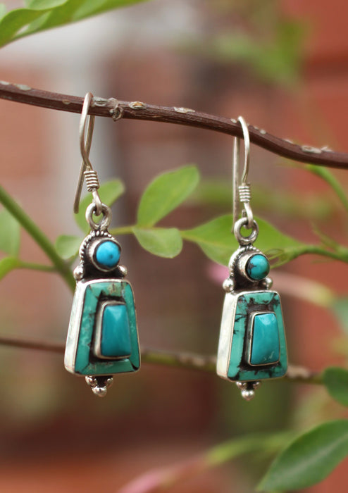 Tibetan Silver Sterling Turquoise Inlaid Earrings