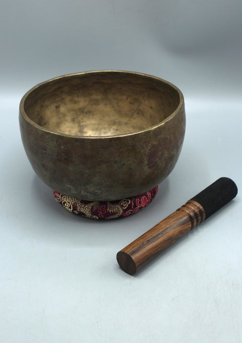 Tibetan Thadobati Thick Singing Bowl with Pinhole Arts 7" 920 gm