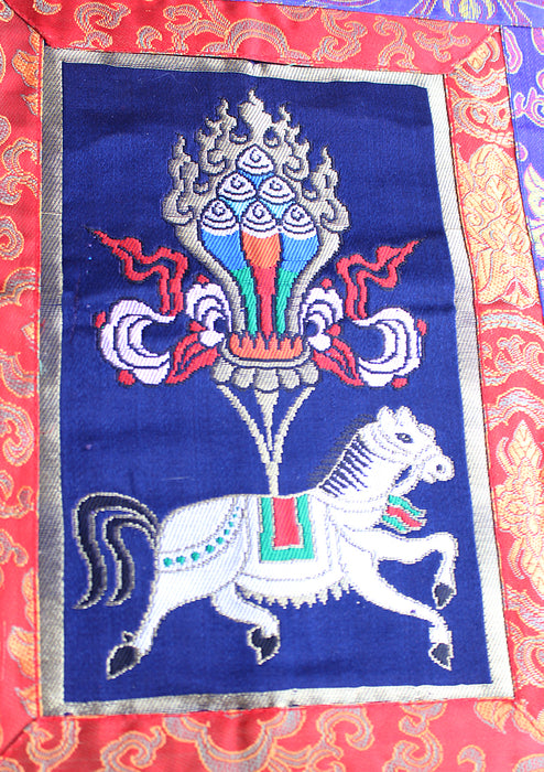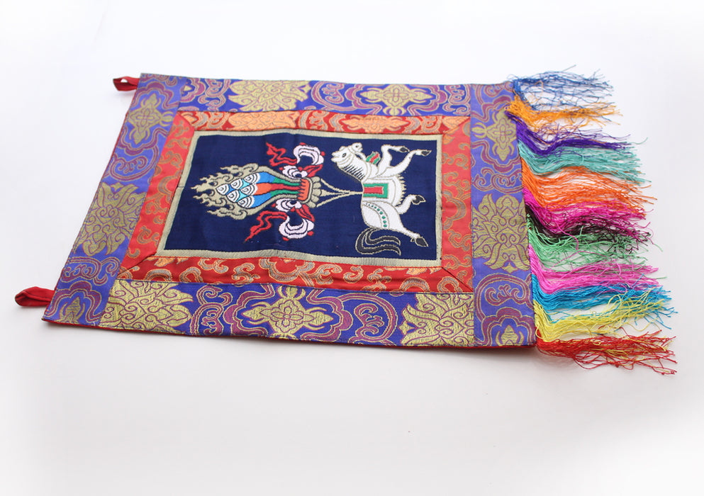 Tibetan Windhorse Silk Brocade Wall Hanging Banner with Colorful Tassel