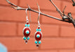 Turquoise and Coral Inlaid Flower Drop Earrings