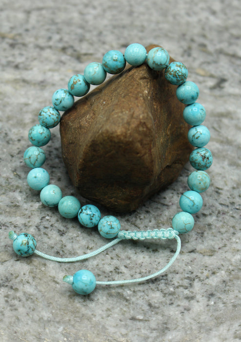 This beautiful adjustable Tibetan Wrist Mala is made of Turquoise stone strung together in an adjustable nylon thread. Turquoise stone has great healing properties enhancing immunity and physical fitness.This unisex bracelet looks unique, spectacular, chic, and can be worn as a fashion accessory as well.