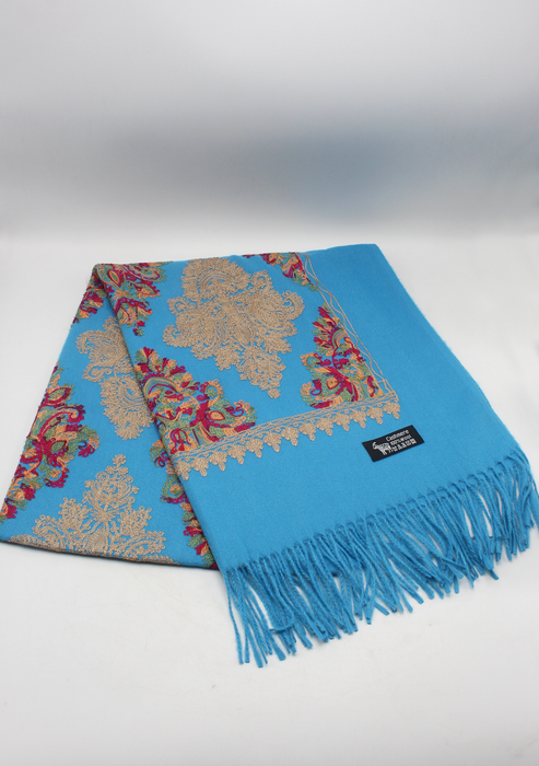 This is an elegant blue mixed woolen shawl. This shawl is super soft and warm. It can be wear as a shawl or as a scarf too. The shawl is flower patterned that looks beautiful. This shawl can carry with you during the journey or wear during meditation. This is a perfect gift to make your loved ones feel warm and cozy.