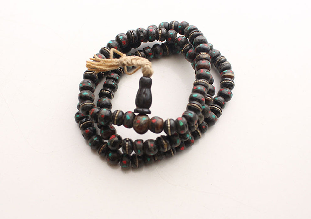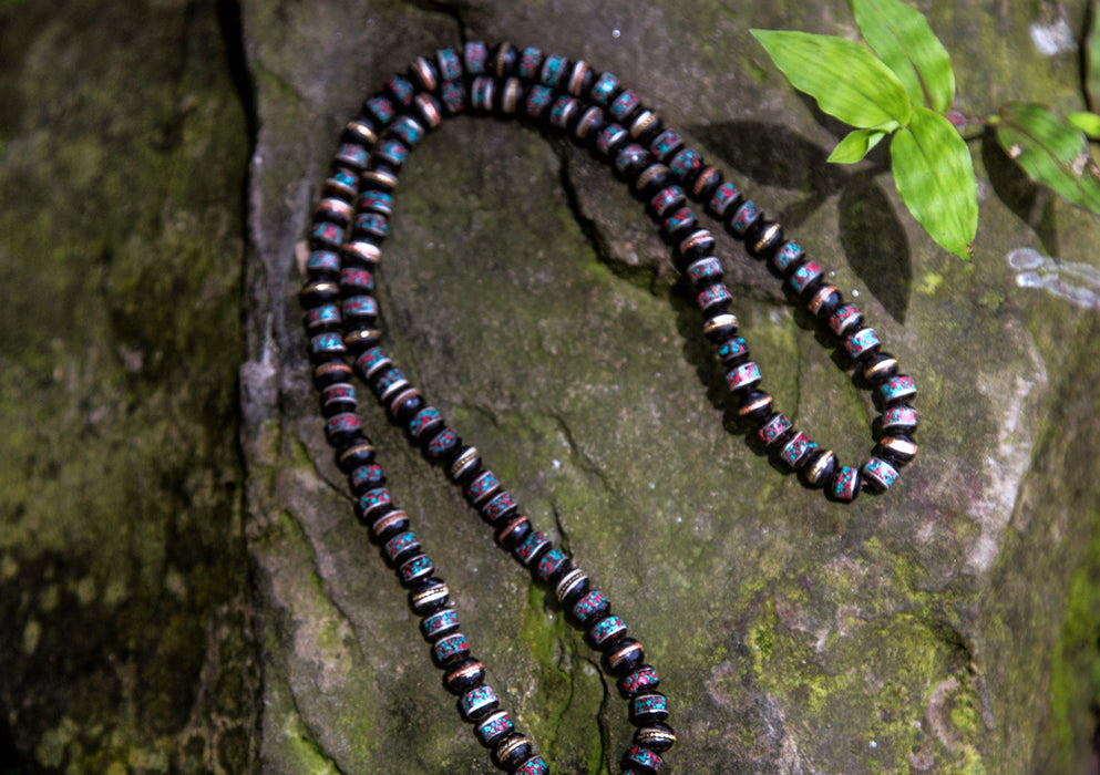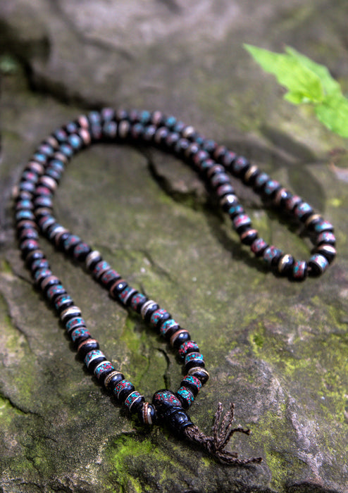 Turquoise & Coral Inlaid Tibetan 108 Beads Prayer Mala