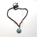 This is a beautiful turquoise inlaid double dorjee pendant. The pendant has a beautiful embossing of the Double Dorjee and has high ritual sentiment and are very popular in the Buddhist culture. This pendant features a durable woven nylon thread with two Dzi spacers.