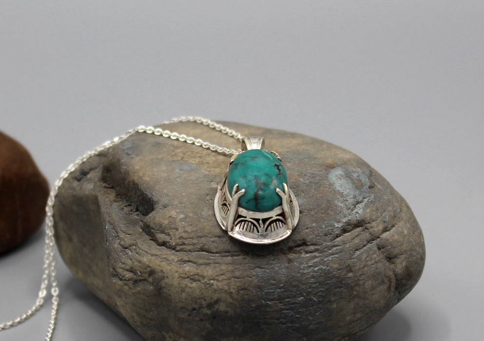 This is a beautiful silver sterling Turquoise pendant handmade in Nepal. Turquoise is the most loved and popular stone in the world. This pendant is made of 925 silver sterling and it is cadmium free certified by the Federation of Handicrafts Association of Nepal.