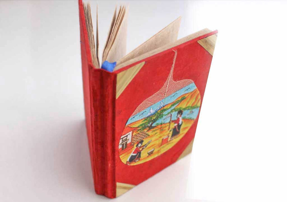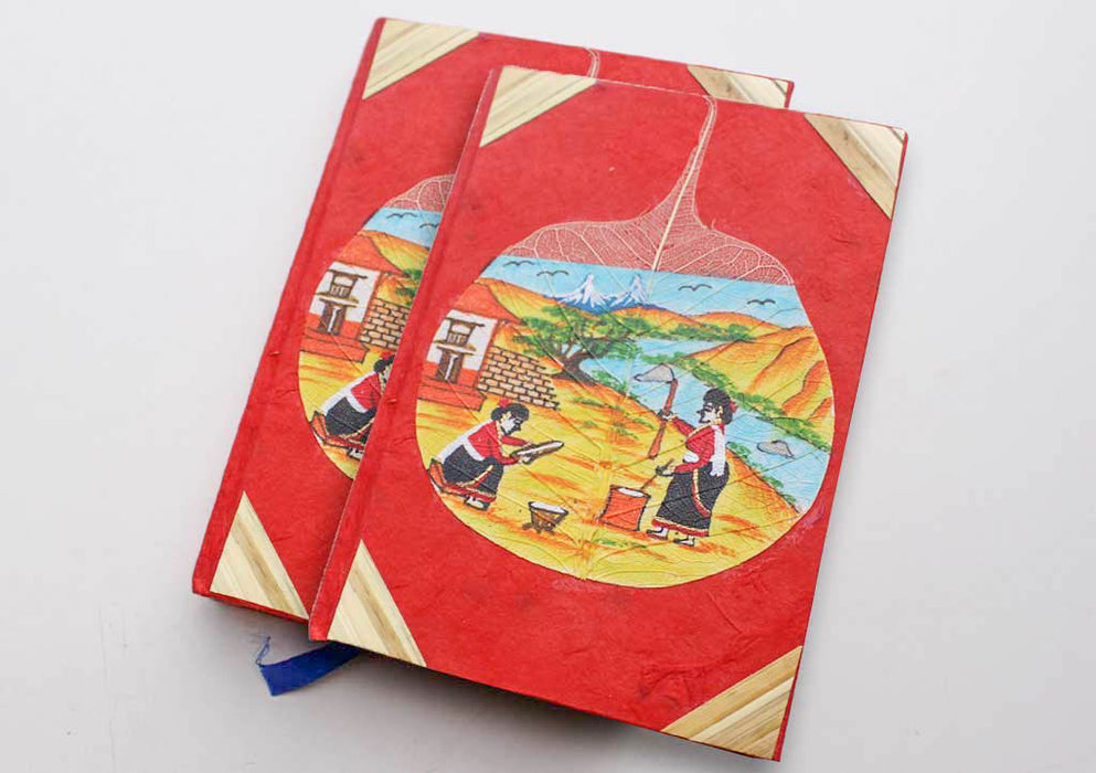 Two Women Working in Village Painted Lokta Paper Journal Book