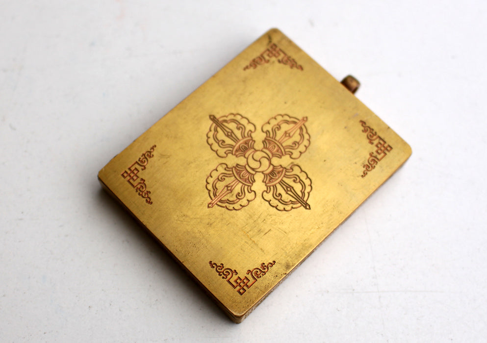 You can easily carry this wherever you want and even can wear as a pendant. The frame has also been carved with eight auspicious symbols in in both side and at the back double Dorjee symbol has been carved. The Om Mane Padme Hum mantra has also been placed inside the pendant.