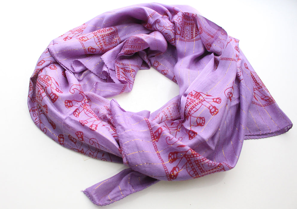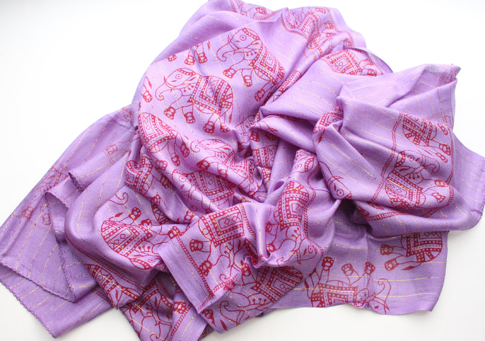 These are pure cotton shawls hand made in Nepal. . These are the perfect meditation shawls that are beautiful and light weight. The color of the shawl is Violet Purple color with elephant print and golden Jari. This shawl This shawl goes well with any kind of casual outfits and these cotton shawls are always in fashion.