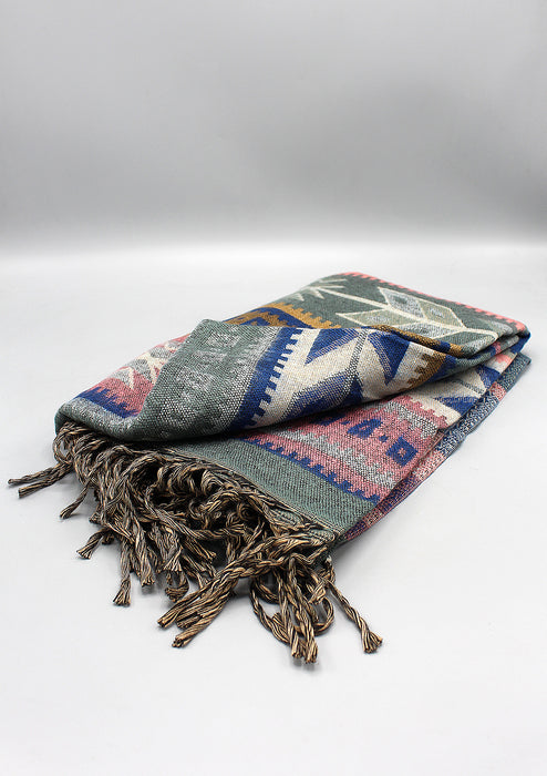 Warm & Soft Pink and Blue Printed Himalayan Yak Wool Shawl