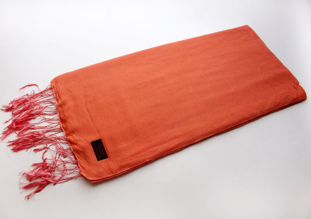 Water Pashmina Shawls are made of blends of Pashmina Wool and Silk fibres. The specialty of Water Pashmina is that it has different shades of color at front and back sides. These shawls can be worn from both sides. The Water Shawl Pashmina is 50% thinner than the regular Pashmina Shawl. This water pashmina shawl is in flamingo color.