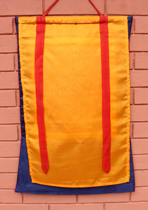 This is a beautiful Wheel of Life Wall Hanging Banner with Blue Brocade.