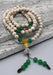 The  lotus seeds are drilled in the middle and a durable thread goes through them. The guru beads is attached with small metal endless knot. This mala is very lightweight and the seeds are truly attractive.